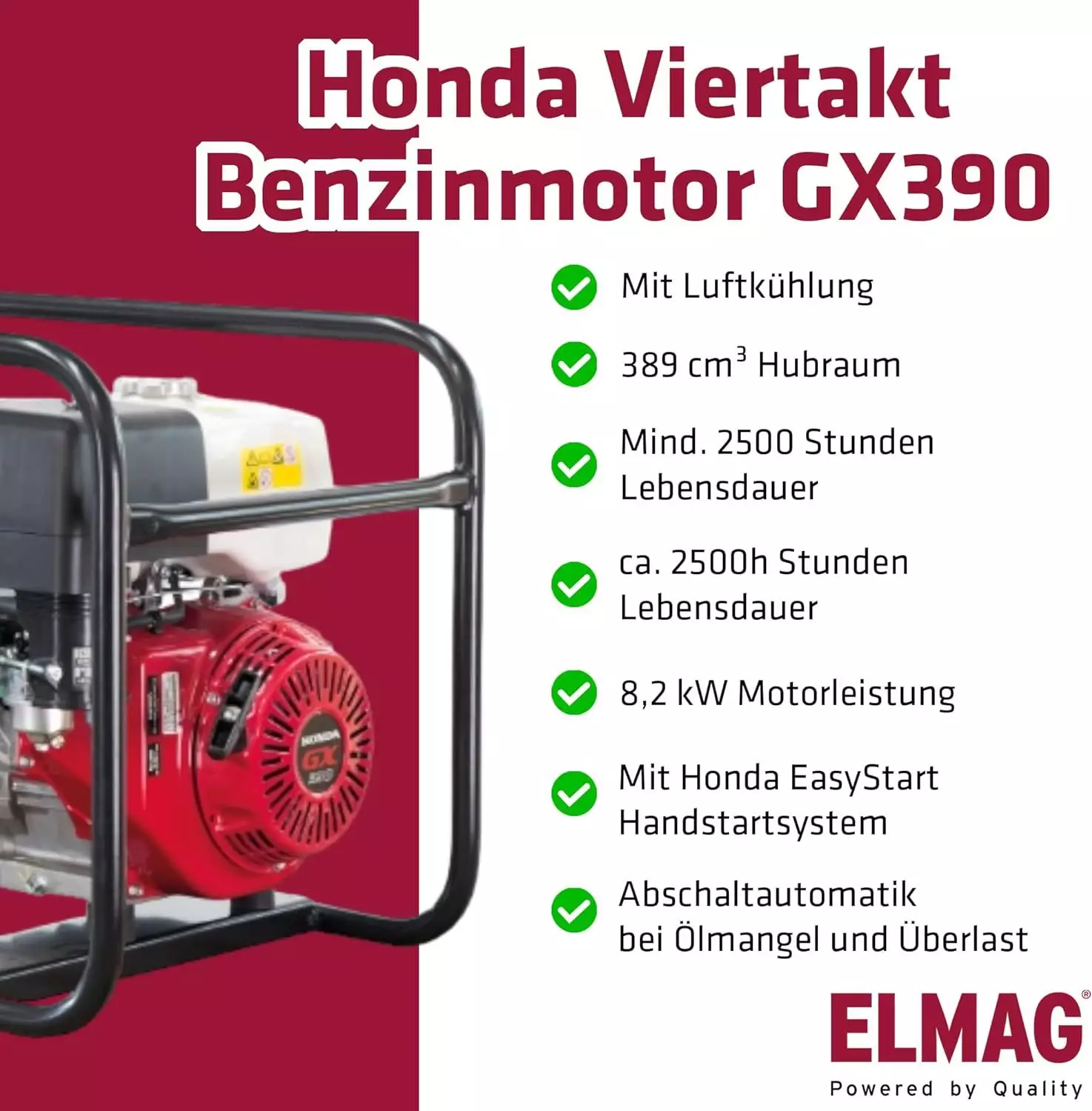 • Abschaltautomatik bei Ölmangel bzw. niedrigem Öldruck